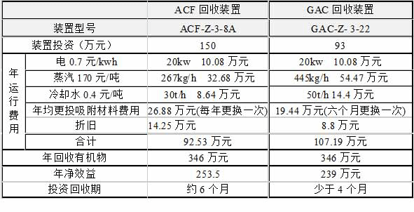 4、投資比較 由于ACF吸附回收裝置主體設(shè)備主要由不銹鋼制造,而GAC回收裝置主體設(shè)備主要由碳鋼制造,并且ACF的價(jià)格遠(yuǎn)高于GAC,因此GAC回收裝置的投資一般為ACF回收裝置投資的1/2到2/3